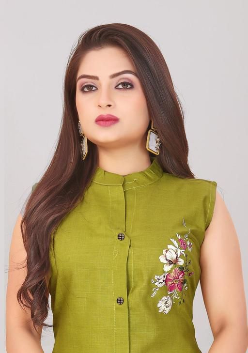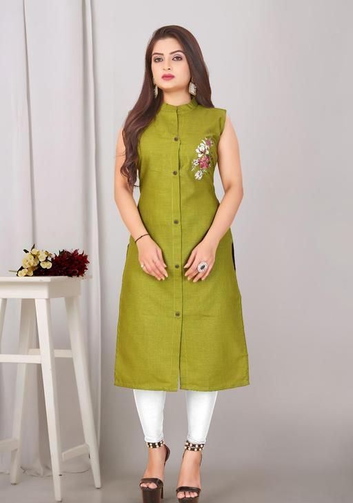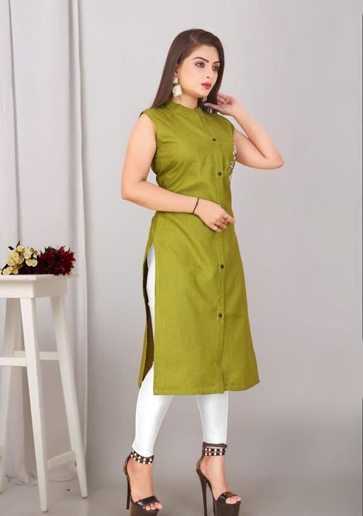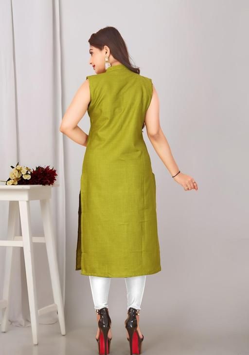 Style: Sleeveless, button-down kurti with a straight cut
