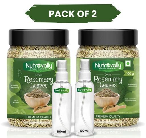 NutroVally-Dried Rosemary Leaves Flavours for Hair Growth (100gram+100gram) | Food Grade Rosemary Leaves for Seasoning + 2 (100ml) Mist Spray Water for Rosemary Water, Aromatic Herb for Hair, Skin & Health Use Jar_100X2_200grams