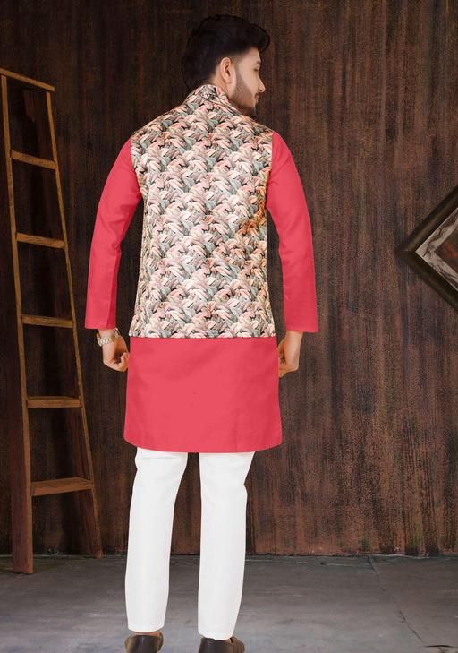 Name: MJBROTHERS(Koti Kurta Set)Stylist Wear 3 Pis Pair Cooton Fabric Kurta Set With Koti For Man