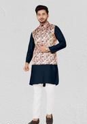 MJBROTHERS(Koti Kurta Set)Stylist Wear 3 Pis Pair Cooton Fabric Kurta Set With Koti For Man