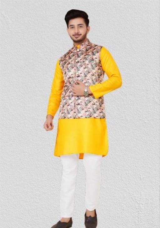 Name: MJBROTHERS(Koti Kurta Set)Stylist Wear 3 Pis Pair Cooton Fabric Kurta Set With Koti For Man
