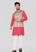 MJBROTHERS(Koti Kurta Set)Stylist Wear 3 Pis Pair Cooton Fabric Kurta Set With Koti For Man