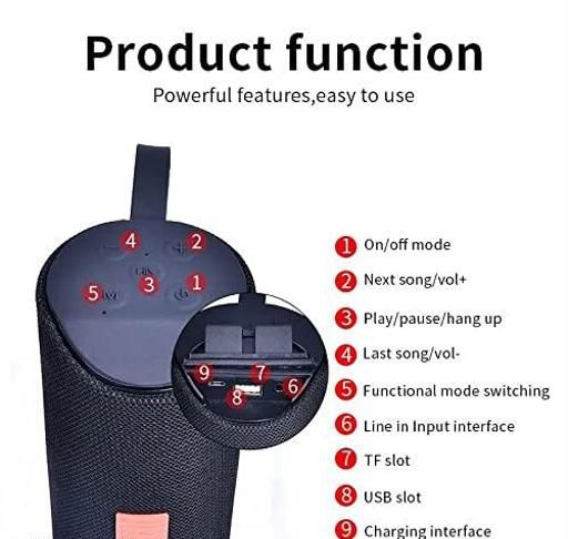 Enjoy seamless connectivity via Bluetooth, AUX, USB, and TF Card, or tune in to your favorite stations with the built-in FM radio. The compact cylindrical build and fabric mesh design not only ensure durability but also make it stylish and easy to carry with the included strap.