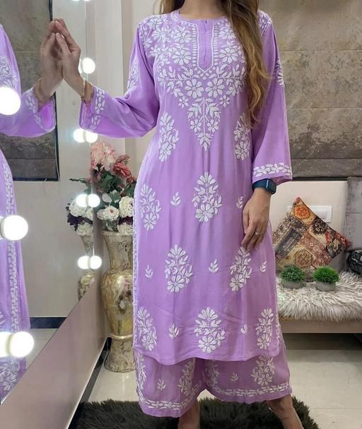 RAYON CHIKANAKARI WROK KURTI AND PLAZOO