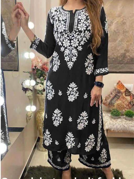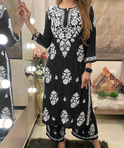 RAYON CHIKANAKARI WROK KURTI AND PLAZOO