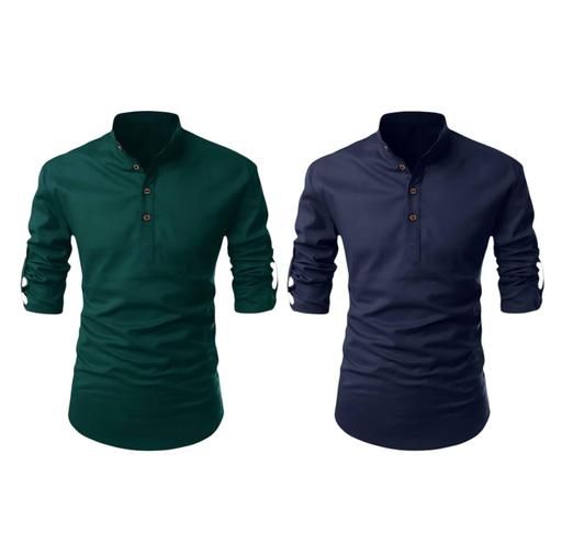 Name: KR 24 ENTERPRISE Designer kurtas for men Men’s short kurta combo (Green, Navy Blue)