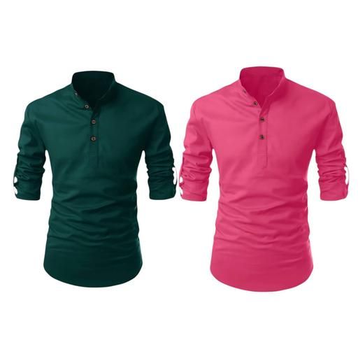 Name: KR 24 ENTERPRISE Designer kurtas for men Men’s short kurta combo (Green, Peach)