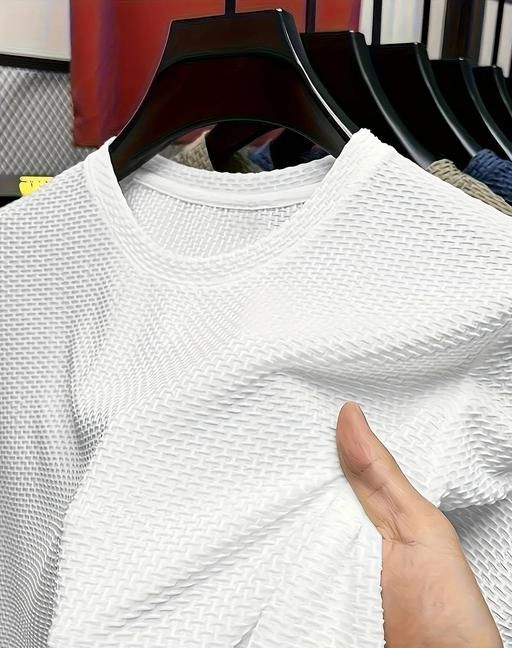 Name: Men's Oversized Waffle Knit T-Shirt – Textured Cotton Blend, Casual Streetwear, Breathable & Stylish Popcorn Fabric Tee, Relaxed Fit for Everyday Comfort & Fashionable Look
