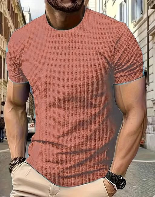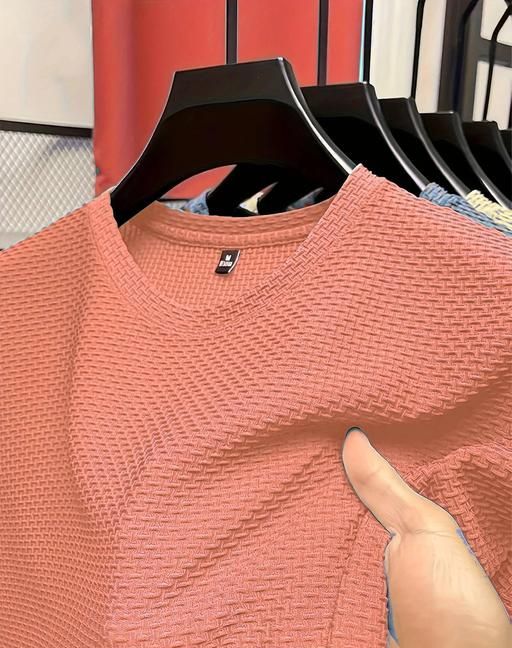 Name: Men's Oversized Waffle Knit T-Shirt – Textured Cotton Blend, Casual Streetwear, Breathable & Stylish Popcorn Fabric Tee, Relaxed Fit for Everyday Comfort & Fashionable Look