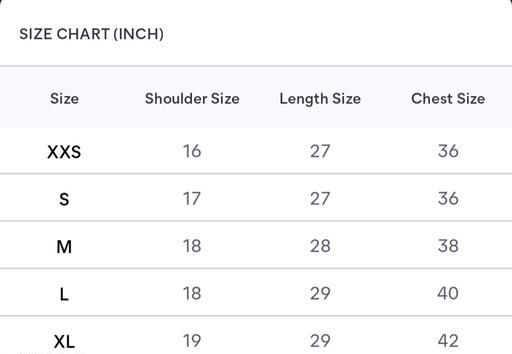 XL (Chest Size: 42 in, Length Size: 29 in)