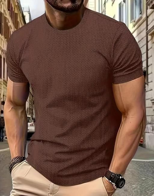 Name: Men's Oversized Waffle Knit T-Shirt – Textured Cotton Blend, Casual Streetwear, Breathable & Stylish Popcorn Fabric Tee, Relaxed Fit for Everyday Comfort & Fashionable Look