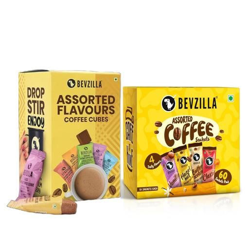 10 Instant Coffee Cubes (5 Flavours) + 60 Instant Coffee Sachets (4 Flavours) | 100% Arabica | No Refined Sugar | Real Ingredients | Zero Preservatives | Assorted Pack for Coffee Lovers|Enjoy Hot & Cold