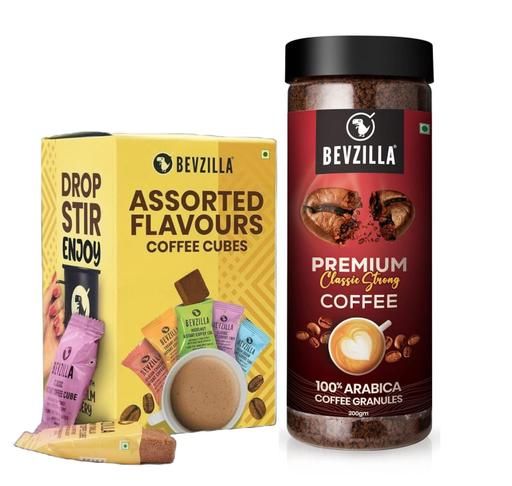 Coffee Combo – 200g Premium Classic Strong Instant Coffee Powder (Unbreakable Jar) + 10 Instant Coffee Cubes with Date Palm Jaggery |100% Arabica|Espresso, Latte & Cappuccino | 5 Flavours| Hot & Cold Brew