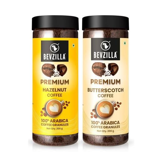 Name: Flavoured Instant Coffee Combo – 200g Hazelnut & 200g Butterscotch | 100% Arabica Coffee Powder | Ideal for Espresso, Latte & Cappuccino | Enjoy Hot or Cold | Unbreakable Jars | Makes 400 Cups