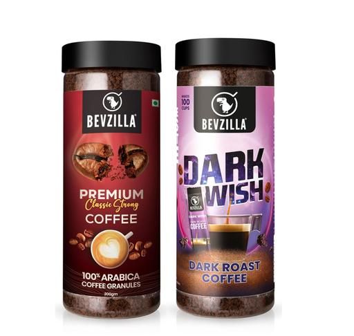 Classic Strong & DarkWish Instant Coffee Powder – 200g Each | 100% Arabica Beans|Strong Coffee|Best For Espresso, Latte & Cappuccino | Hot & Cold Coffee | Unbreakable Jar