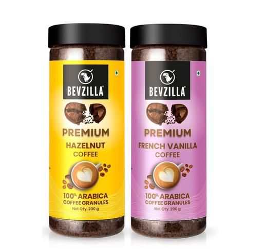 Instant Coffee Combo | 200g Hazelnut & 200g Vanilla Coffee Powder | 100% Arabica Flavoured Coffee Powder | For Espresso, Latte & Cappuccino | Hot & Cold | Unbreakable Jars | Makes 400 Cups