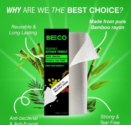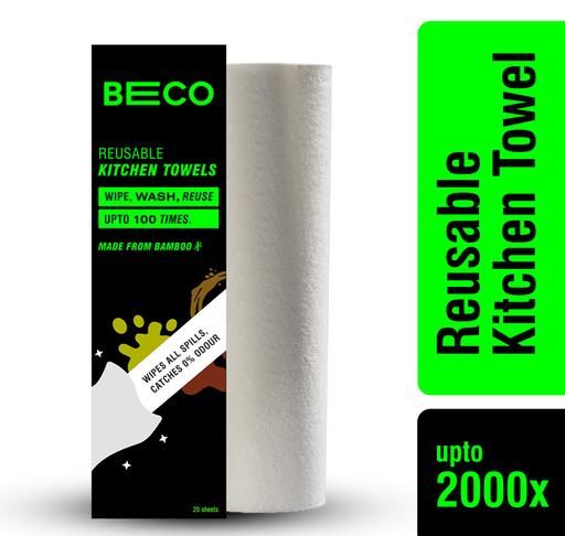 BECO Kitchen Towel Roll are made from Organic Bamboo Tree. These kitchen towels are reusable & washable. It has a high absorbent quality, super strong and tear free & don't release any foul smell like any other kitchen cloth. Can be easily washed in machine or by hands. They are manufactured keeping in mind the daily requirements of our esteemed customers. One pack of BECO Kitchen towel has 20 sheets which can easily replace your 6 months of regular Kitchen Tissue Roll. They could be used for various purpose such as cleaning your kitchen surface, dishwashing, soak oil from food, etc.