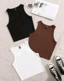 Edge Notch Neck Rib Knit Tank Top Women Crop Tops And Tunics "White Crop Top" Women's White Crop Top Girls White Crop Top Short Top Center U Designer Sando Tops Women's & Girls Solid Ribbed "Tank Tops" Crop Top Like Blouse Crop Top Haul
