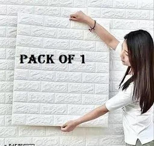 Name: 3D Brick Wallpaper PE foam self adhesive brick design wall stickers/DIY wallpaper for home hotel living room bedroom cafe deco (Pack of 1, 70 x 77 cm, White)