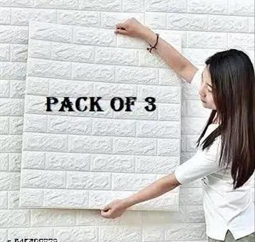Name: 3D Brick Wallpaper PE foam self adhesive brick design wall stickers/DIY wallpaper for home hotel living room bedroom cafe deco (Pack of 3, 70 x 77 cm, White)