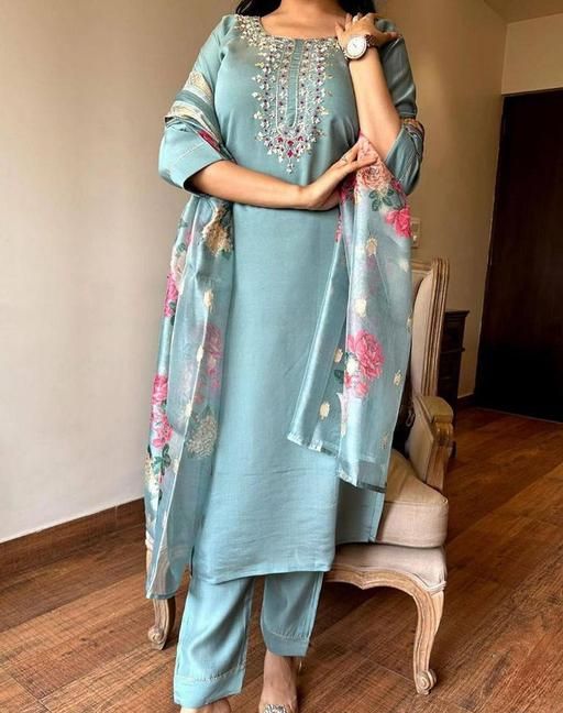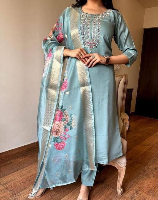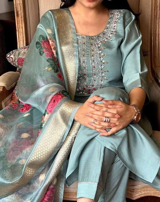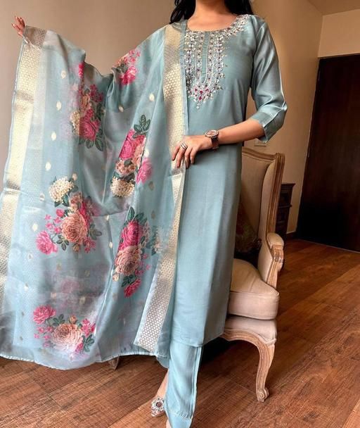 L (Bust Size: 40 m, Shoulder Size: 15 m, Kurta Waist Size: 36 m, Top Length Size: 42 m, Bottom Waist Size: 32 m, Bottom Length Size: 38 m, Dupatta Length Size: 2.25 m)