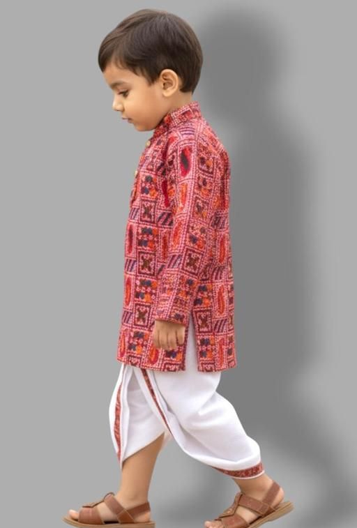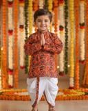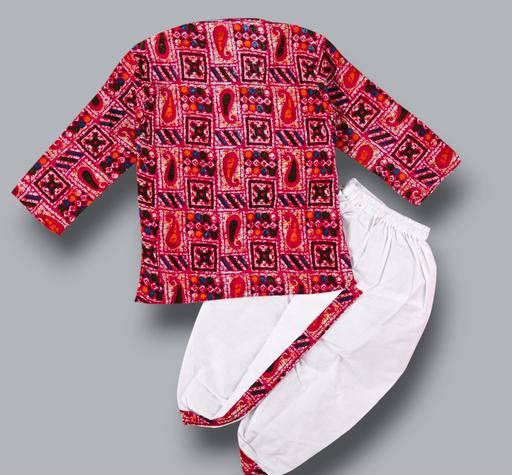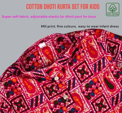 Name: Ethnic Gujarati Ajrakh Maroonish Red printed dhoti kurta set for kids cotton Kurta Dhoti pant for Boys full sleeves dhuti kurta for Uttarayan and Makar Sankranti baccho ke kapde