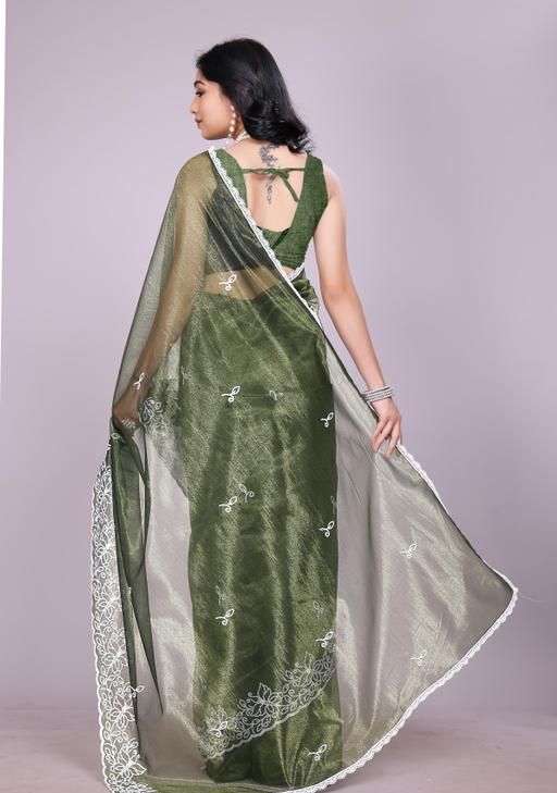 New Gold silk Net Saree with work and blouse