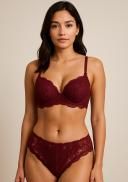 Elevate your sensuality with the Crimson Whisper Lace Lingerie Set — where elegance meets passion. This exquisite lingerie set is crafted with delicate mehroon (deep maroon) lace that feels as soft as a whisper against your skin. Designed to enhance your natural curves, it blends timeless sophistication with a bold, alluring charm.