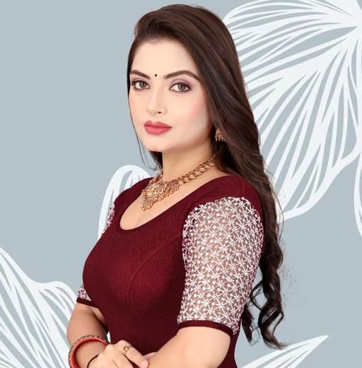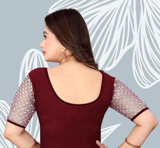 Name: Embroidery Sleeve Stretchable Blouse Silver Zari Work for Women