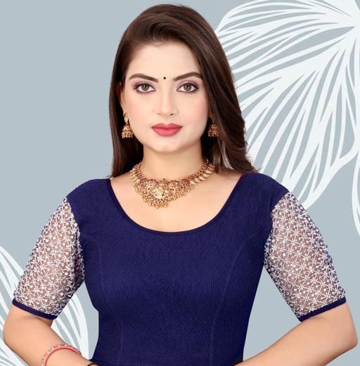 Name: Embroidery Sleeve Stretchable Blouse Silver Zari Work for Women