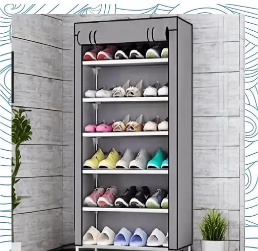 Abhigyan Store Multipurpose 6 - compartment Gray premium quality shoe Rack with Dust Proof Zip Cover for Toys , Cloths , and shoes , Multiuse wide space storage rack......