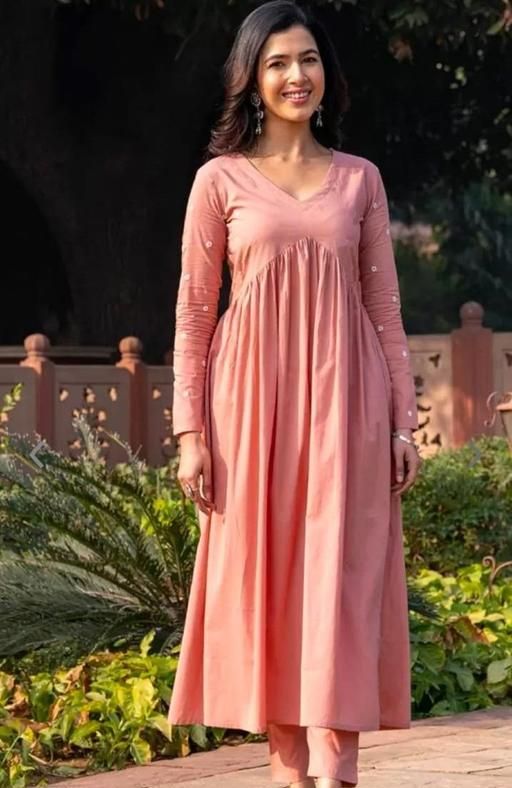 pink embrodary kurta sats for woman. v nack ;long sleeves kurta a line kurta 5
