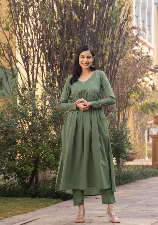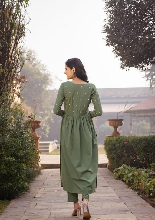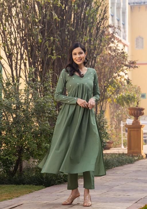 green embrodary kurta sats for woman. v nack ;long sleeves kurta 5