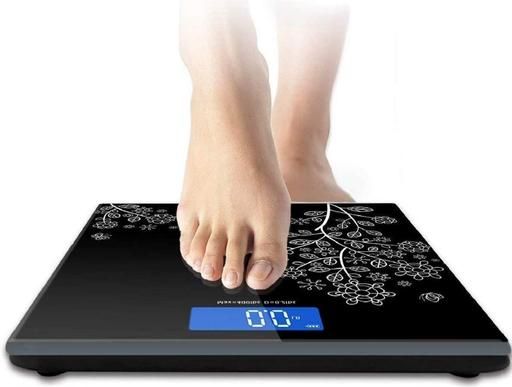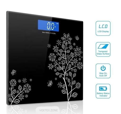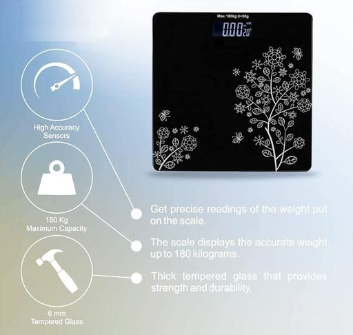 BATHROOM SCALE : ( FLOWER DESIGN ) - Weight scale with measuring tape - sleek design - easy to use - easy to read - step on technology - high precision measurement - LCD display - accurate measurement - tempered glass - anti-skid padding - fit any where - auto switch on-off - auto zero Country of Origin: India