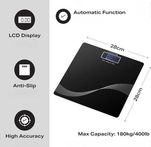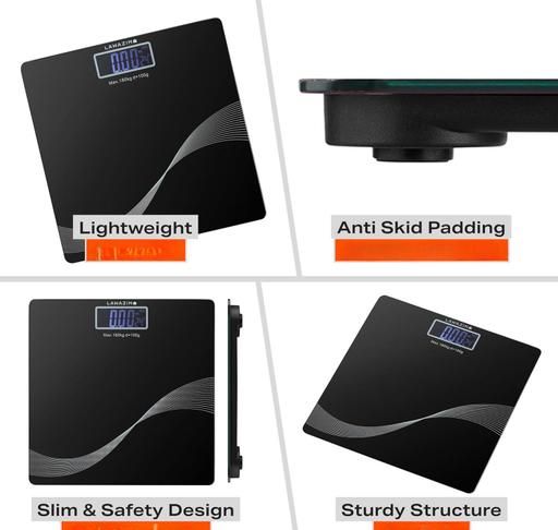 BATHROOM SCALE : (ISCALE DESIGN ) - Weight scale with measuring tape - sleek design - easy to use - easy to read - step on technology - high precision measurement - LCD display - accurate measurement - tempered glass - anti-skid padding - fit any where - auto switch on-off - auto zero Country of Origin: India