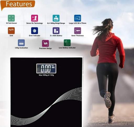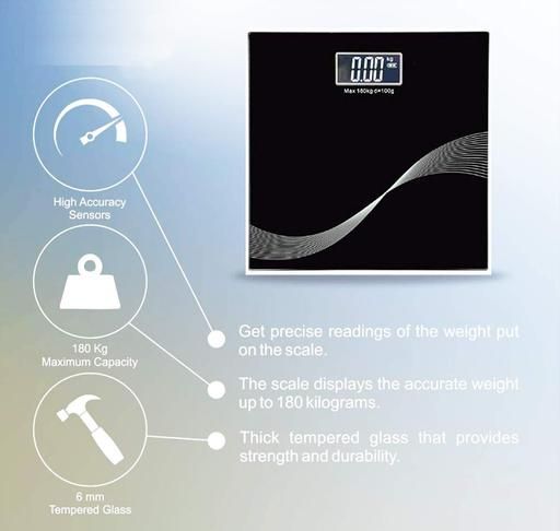 BATHROOM SCALE : ( WAVE DESIGN ) - Weight scale with measuring tape - sleek design - easy to use - easy to read - step on technology - high precision measurement - LCD display - accurate measurement - tempered glass - anti-skid padding - fit any where - auto switch on-off - auto zero Country of Origin: India