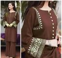 L (Bust Size: 40 in, Shoulder Size: 15 in, Kurta Length Size: 44 in, Kurta Hip Size: 42 in, Kurta Waist Size: 38 in, Bottom Waist Size: 32 in, Bottom Hip Size: 34 in, Bottom Length Size: 39 in)