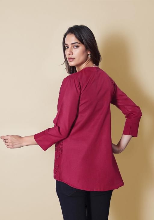 Introducing our stunning black embroidered tunic, a perfect combination of style and comfort. Crafted from high-quality cotton slub fabric, this tunic offers a flattering fit and shape, making it ideal for daily wear. The V-neckline adds a touch of elegance, while the intricate floral embroidery adds a beautiful ornamentation. With three-quarter sleeves, it's perfect for all seasons. Made with care and expertise in India, this stitched embroidered tunic showcases the beauty of craftsmanship. Elevate your wardrobe with this versatile and chic piece, suitable for any occasion. Step out in confidence and grace with our exclusive black embroidered tunic.