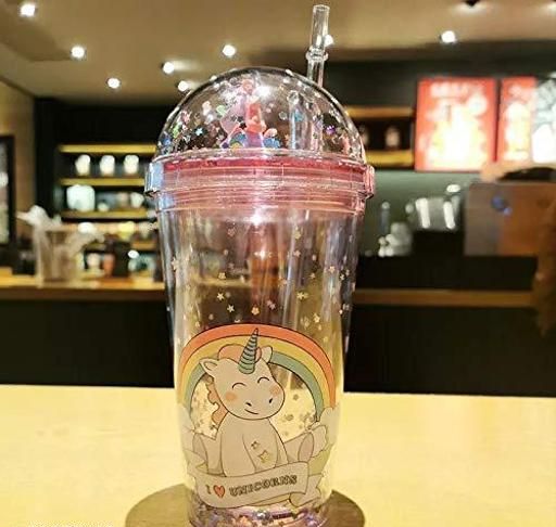 Name: Unicorn Transparent Sipper/Water Bottle/Mason Jar/Tumbler with Straw for Kids Plastic Tumbler (380 ml)
