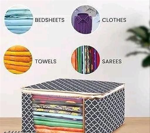 Keep your wardrobe neat and your sarees well-organized with this Foldable Saree Storage Organizer Box. Designed with a zip closure and a transparent front window, it lets you easily view and access your neatly stacked garments. The durable non-woven fabric provides strong support and keeps your clothes protected from dust, moisture, and insects. This pack of two spacious organizers is ideal for storing sarees, lehengas, dupattas, and other garments, making them perfect for seasonal storage or daily organization. Foldable and lightweight, they save space when not in use.
