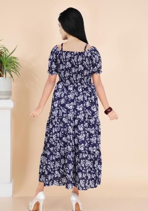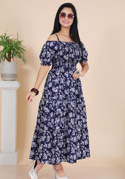 Look effortlessly stylish in this floral printed maxi dress for women. Featuring a smocked bodice, puff sleeves, it offers both comfort and charm. Perfect for casual outings,long frock for women,birthday party wear,ocation,parties brunches, vacations, or festive wear.
