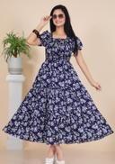 Women Fashion Floral Printed Fit and Flare Maxi Dresses Party Wear With Affordable Price