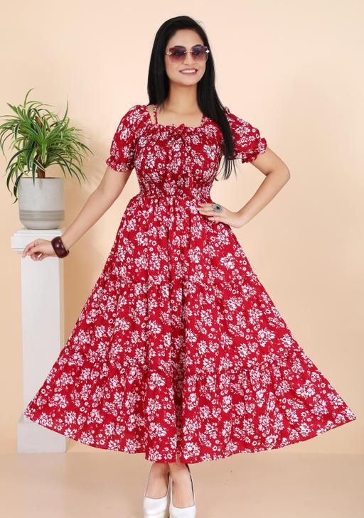 Women Fashion Floral Printed Fit and Flare Maxi Dresses Party Wear With Affordable Price