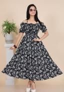 Women Fashion Floral Printed Fit and Flare Maxi Dresses Party Wear With Affordable Price
