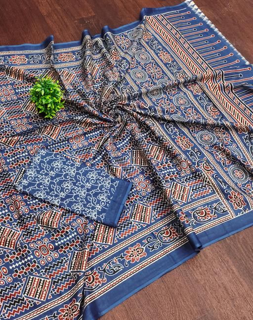 Name: AJRAKH BLOCK PRINT MULMUL COTTON SAREES