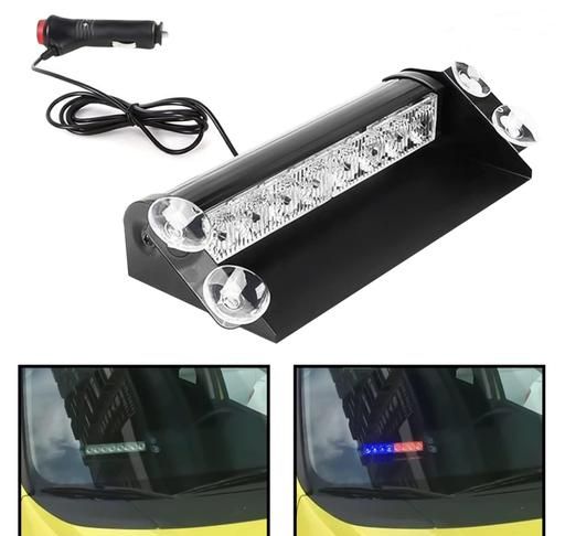 EliteAuto Police Warning Flash Red/Blue Car Light. Devices equipped with 12 volt DC power. Unique 8 LED flashing lights Can be connect to rear or front windshield of the vehicle Provides safety in hazy weather conditions like fog, heavy rain Low on power consumption without putting any extra load on battery Works with 12V current Steps of usage. Designed for convenient wind shield mounting with suction cups. Number of LED: 8. Output power: 8W. Voltage: DC-12V. Easy to use and install.