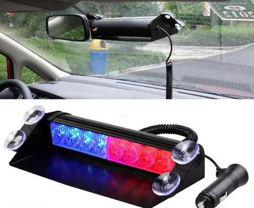 EliteAuto Police Warning Flash Red/Blue Car Light. Devices equipped with 12 volt DC power. Unique 8 LED flashing lights Can be connect to rear or front windshield of the vehicle Provides safety in hazy weather conditions like fog, heavy rain Low on power consumption without putting any extra load on battery Works with 12V current Steps of usage. Designed for convenient wind shield mounting with suction cups. Number of LED: 8. Output power: 8W. Voltage: DC-12V. Easy to use and install.