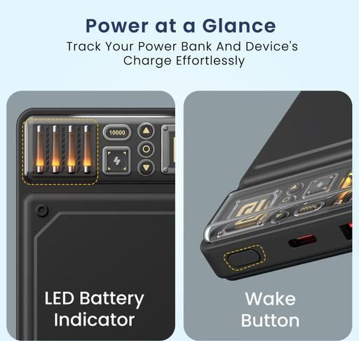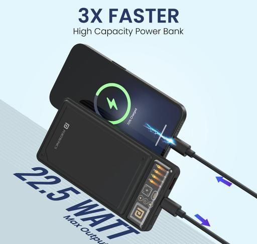 Name: Luxcell C 10K 10000 mAh 22.5W Fast Charging Power Bank, Ultra Slim Power Bank with Mach USB-A Output, Type C PD Output, Type C Input, LED Indicator, Wake Up Button (Black)