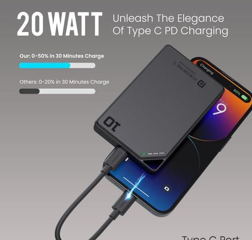 Experience the future of charging with the Portronics Boosty 10K, a high-capacity power bank packed with cutting-edge features. Enjoy lightning-fast 20W Type-C PD charging, keeping your devices powered up throughout the day.Along with it, the magnetic wireless power bank offers magnetic charging convenience for compatible iPhones, even through cases, and wirelessly charges your smartphones and earbuds at a speed of up to 15W. With its intelligent auto-hibernation feature, you can conserve battery life and ensure maximum power efficiency . The sleek aluminum alloy design and compact size of the slim power bank make it easy to carry anywhere.. This smart and compact power bank is compatible with a wide range of devices, making it your go-to companion for on-the-go power needs.