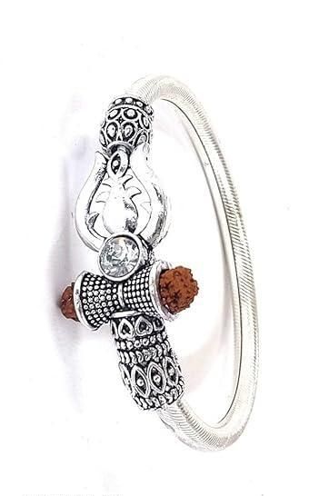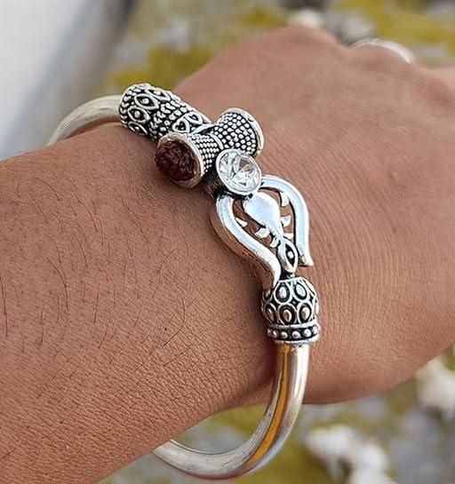 Name: Rudraksha Shiv Trishul Damroo Om Kada a beautiful is situated between damroo and Trishul Free Size for Mens,boys & girls Silver Oxidized braclet for men s silver casting kada